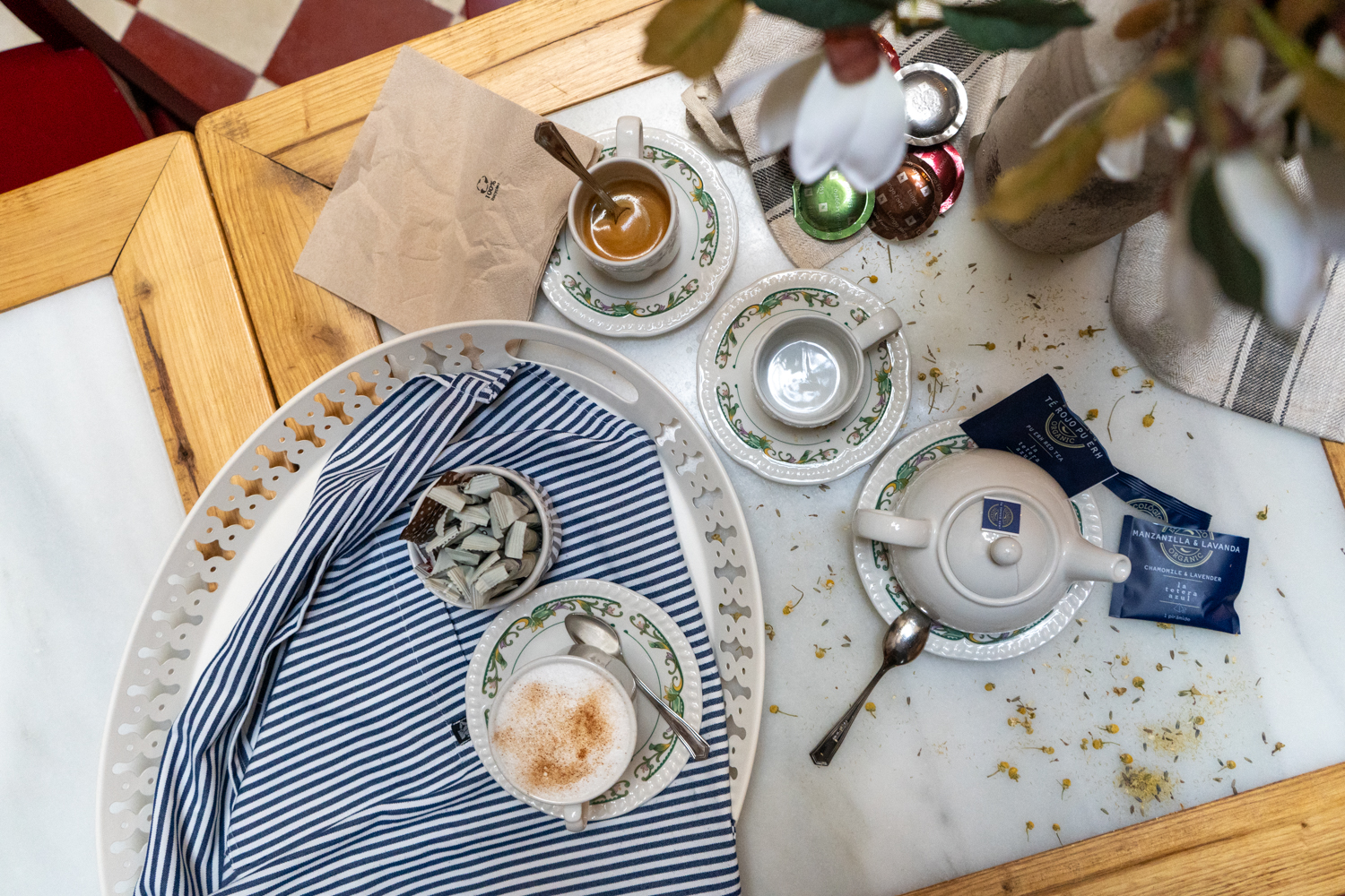 - Merienda con dulces de La Bodeguilla, turrones y café